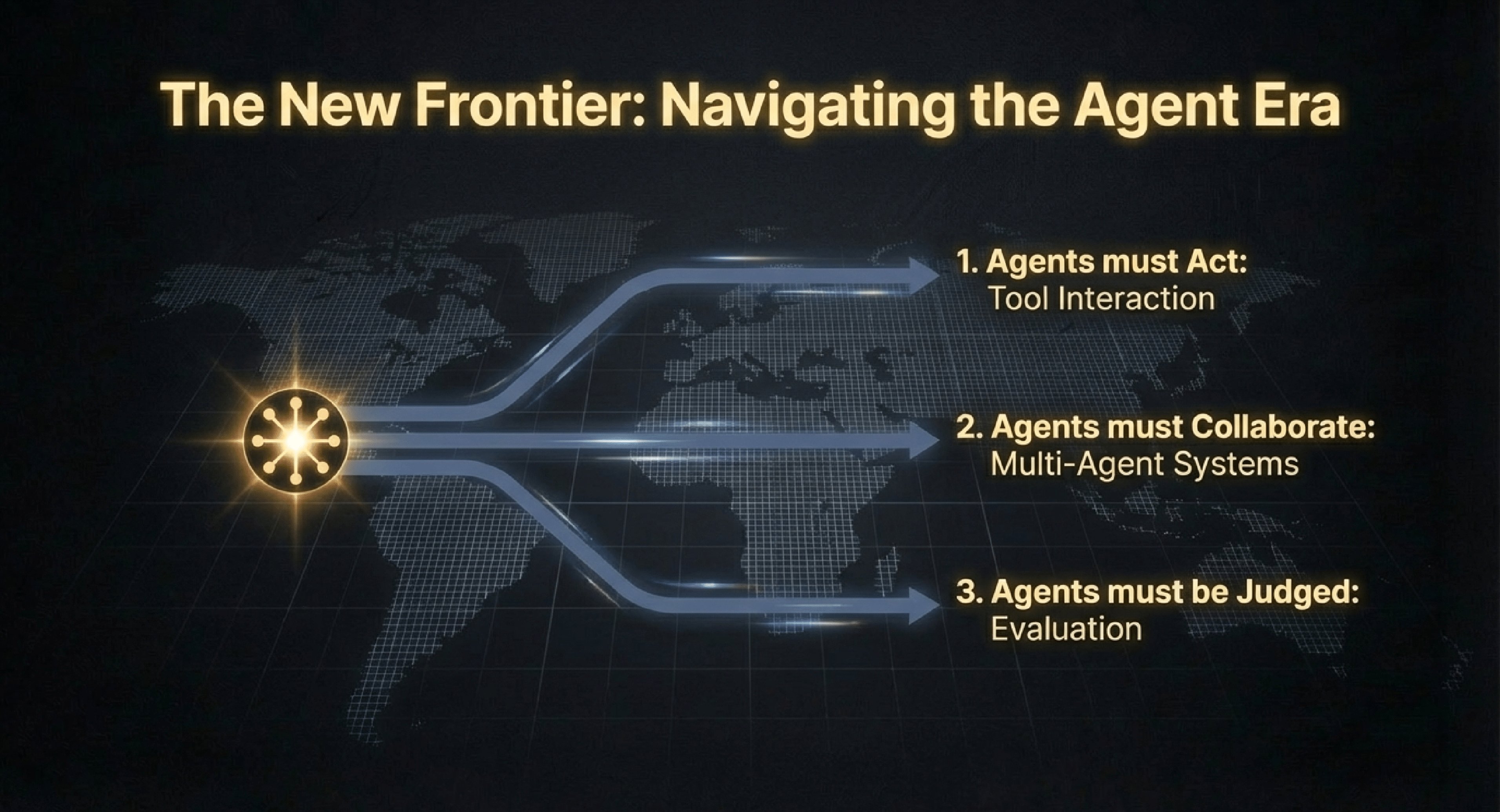 Here’s a reversal that doesn’t get enough attention: in traditional ML research, the hard part was structural and methodological innovation. Evaluation was comparatively straightforward—you had benchmarks, you measured accuracy, you moved on. Now? Generation is the solved problem. Evaluation is the bottleneck. LLMs can produce hundreds of pages of content on demand. But how do we assess, compare, and judge the quality of that content? How do we know if one agent’s reasoning is actually better than another’s? How do we detect subtle failures in multi-step plans? Exploring the boundaries of evaluation is, in a sense, defining what intelligence is. And comprehensive, fine-grained evaluation is the only way to ensure that agents achieve their maximum utility. Without it, we’re flying blind.